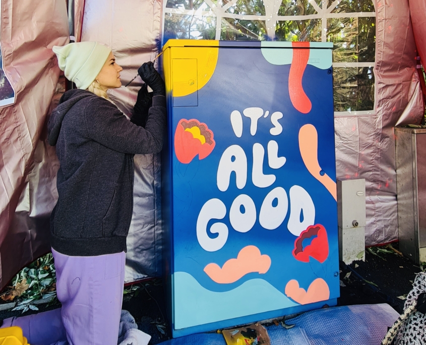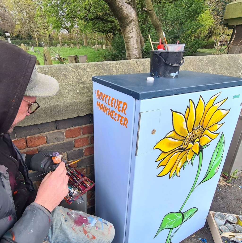 Box Clever MCR is helping Manchester residents be involved in transforming parts of their communities into more desirable and interesting places to live in. Public Art brings people together, it gives us a sense of focus, helps to create a local identity and re-energise community pride. In some cases, we adopt our much loved flashes of creativity in our places and it can often feel that they become our own, helping us to identify with our place and feel more positive about where we live. When people feel positive about where they live, when they feel empowered, truly wonderful things can happen. Not all areas are blessed with large pots of funding to keep things looking beautiful and ticking over, Box Clever MCR is ready to help local communities get involved in bridging the gap and bringing community art to everyone. We don’t have to just look at grey uninspiring spaces, all communities deserve the opportunity to be exposed to creativity where they live. We work with up and coming and also established artists to deliver projects across the city.